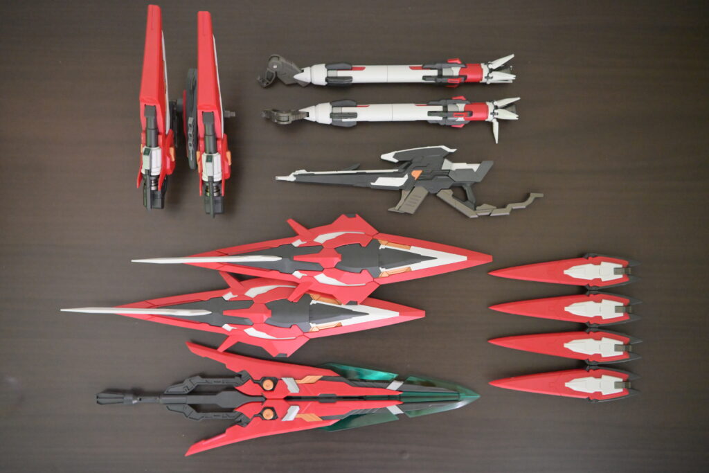 付属品はレールガン(バックパック)、バーニア、ビームライフル、シールド、ファンネルのようなもの、大剣とかなりの付属品があります。
