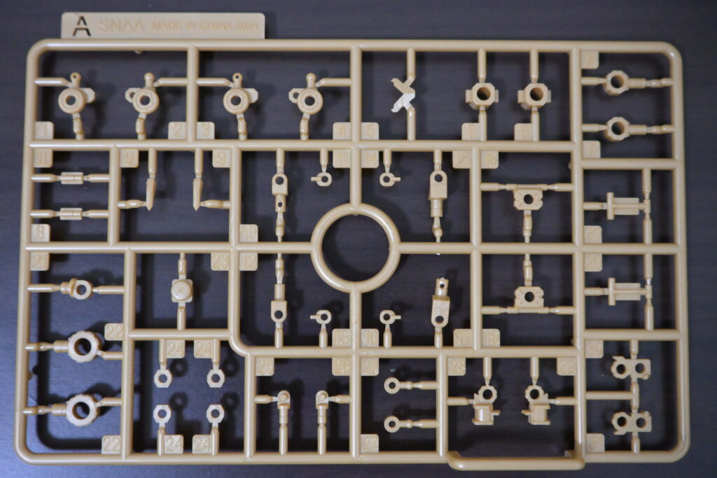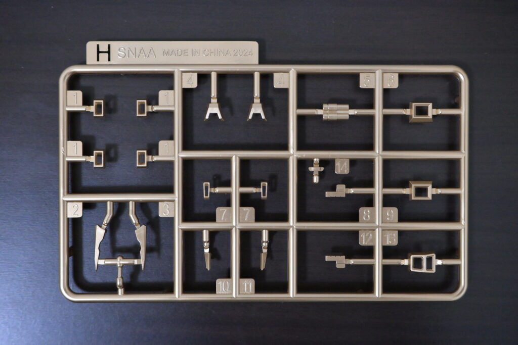 とはいえ、他の中華プラモとは違い、成型色となっていて光沢は無く国内プラモデルでもよく見るゴールドのランナーです。