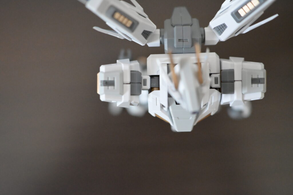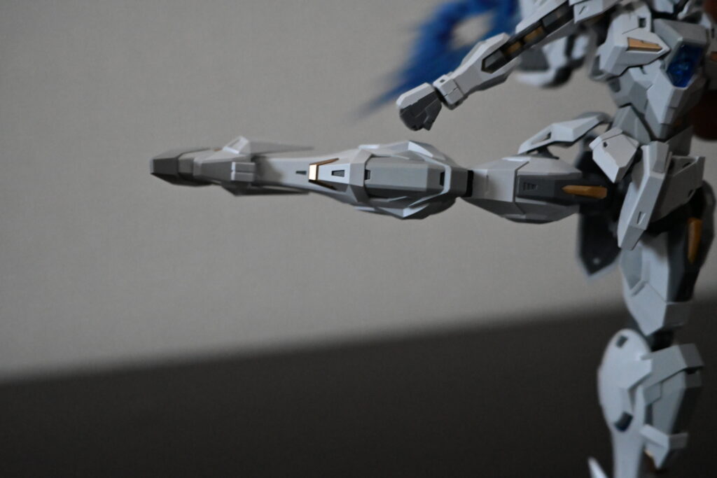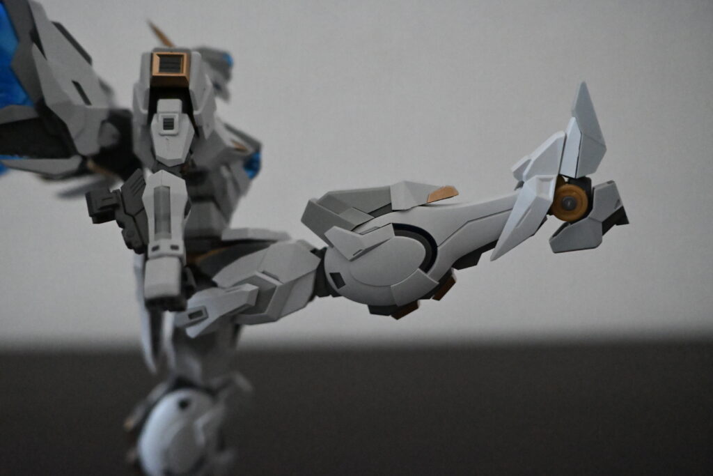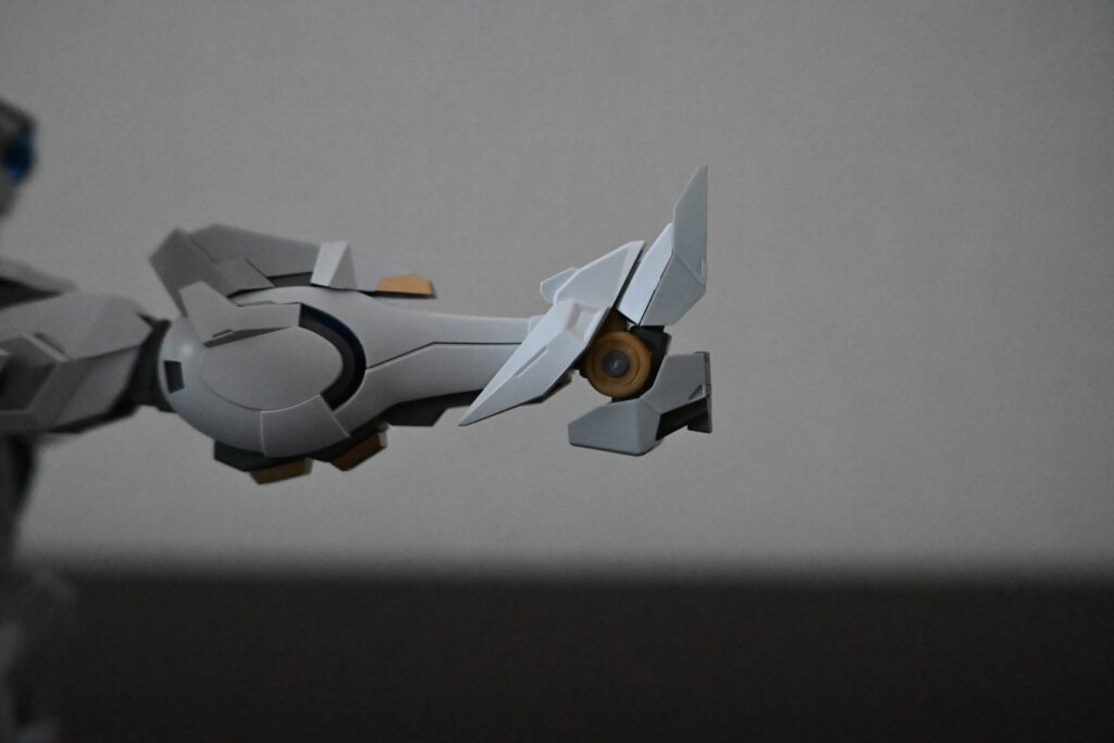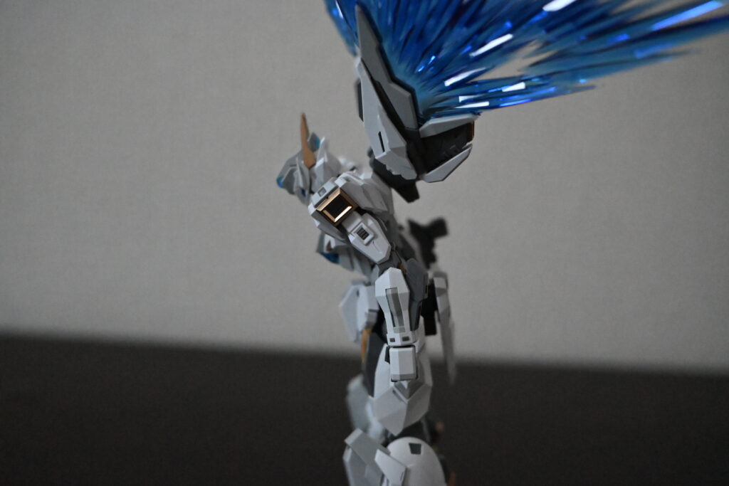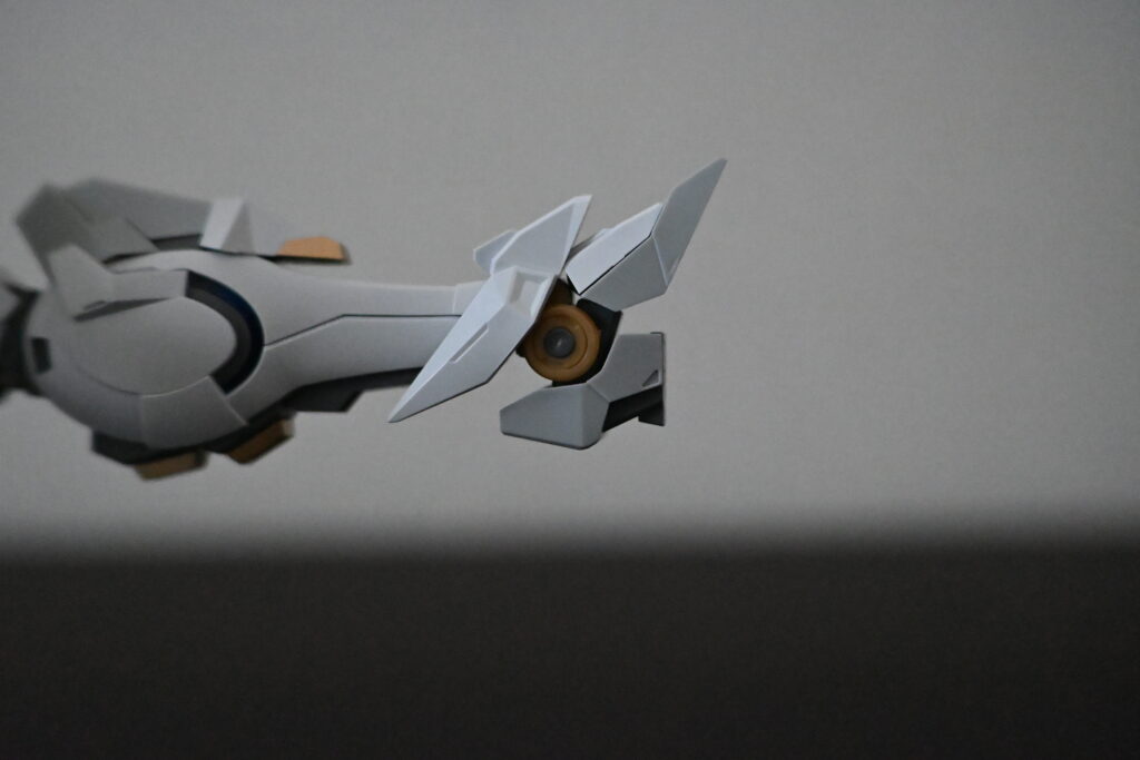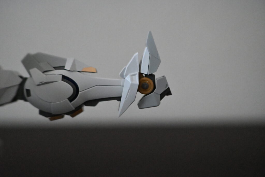 ただ、このギミックにした影響なのか、肩部分の保持力はあまりなく、武器を構えようとすると肩が落ちてきてしまうので、ポージングする際は注意が必要です。