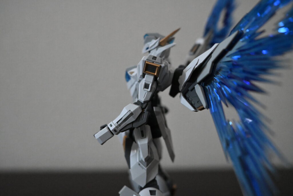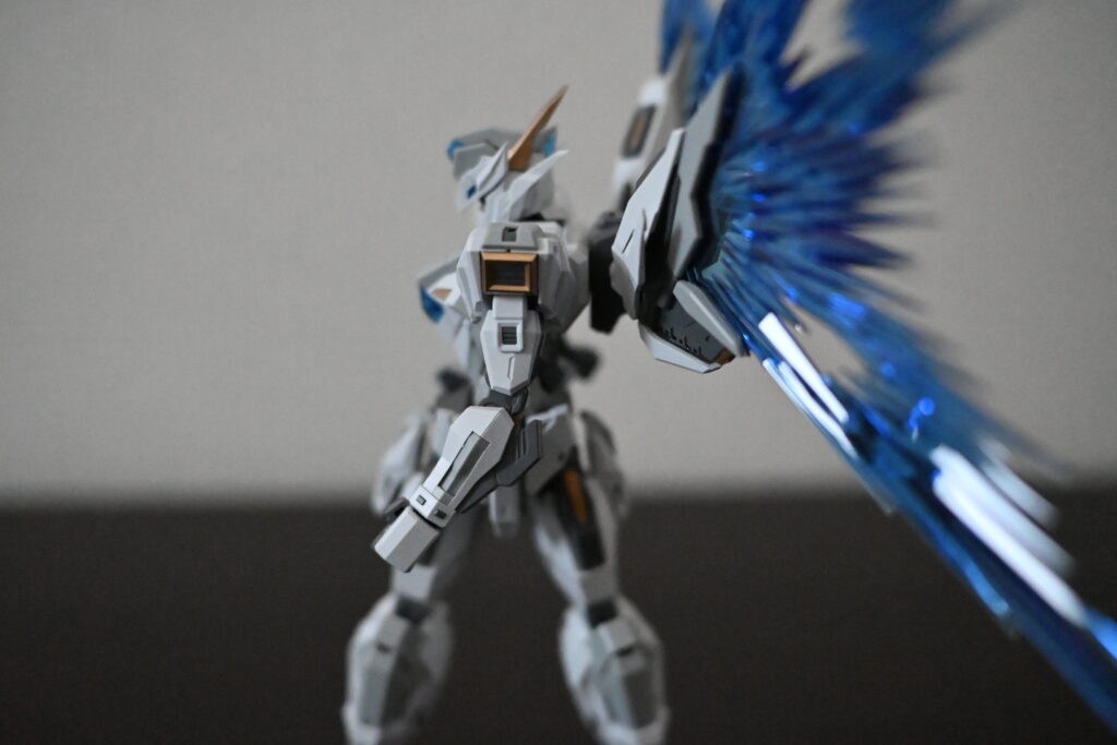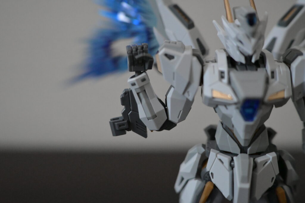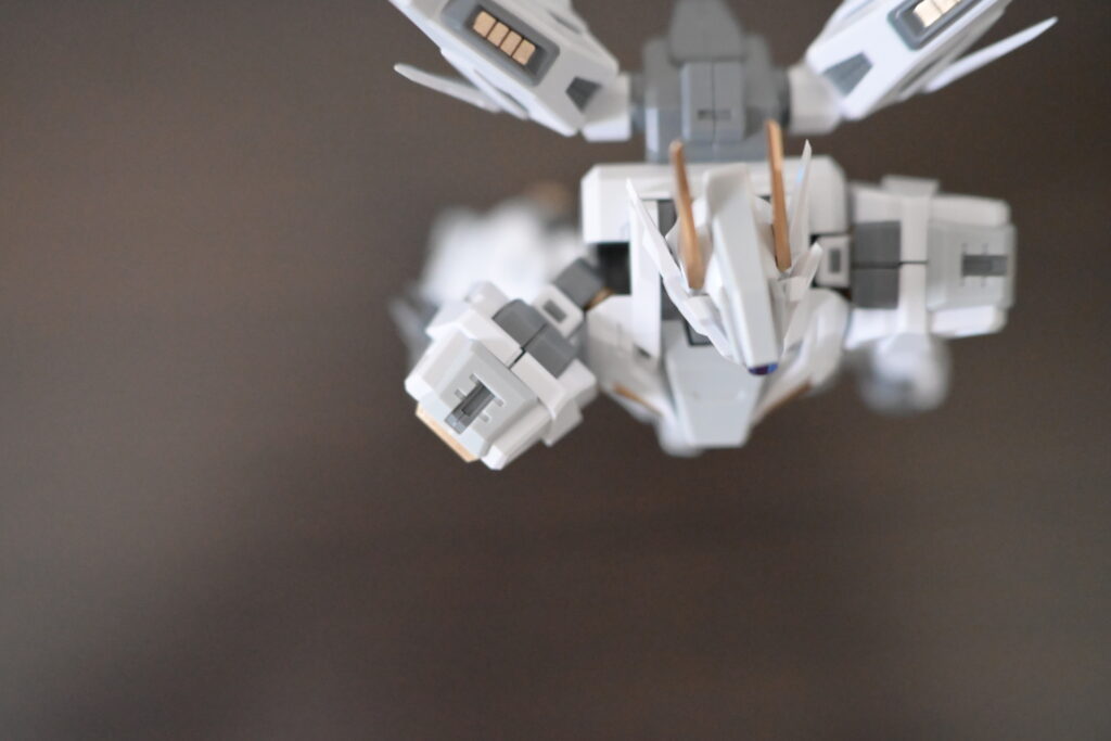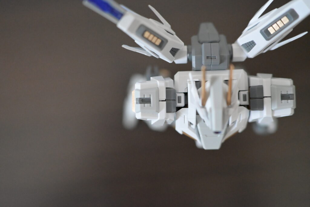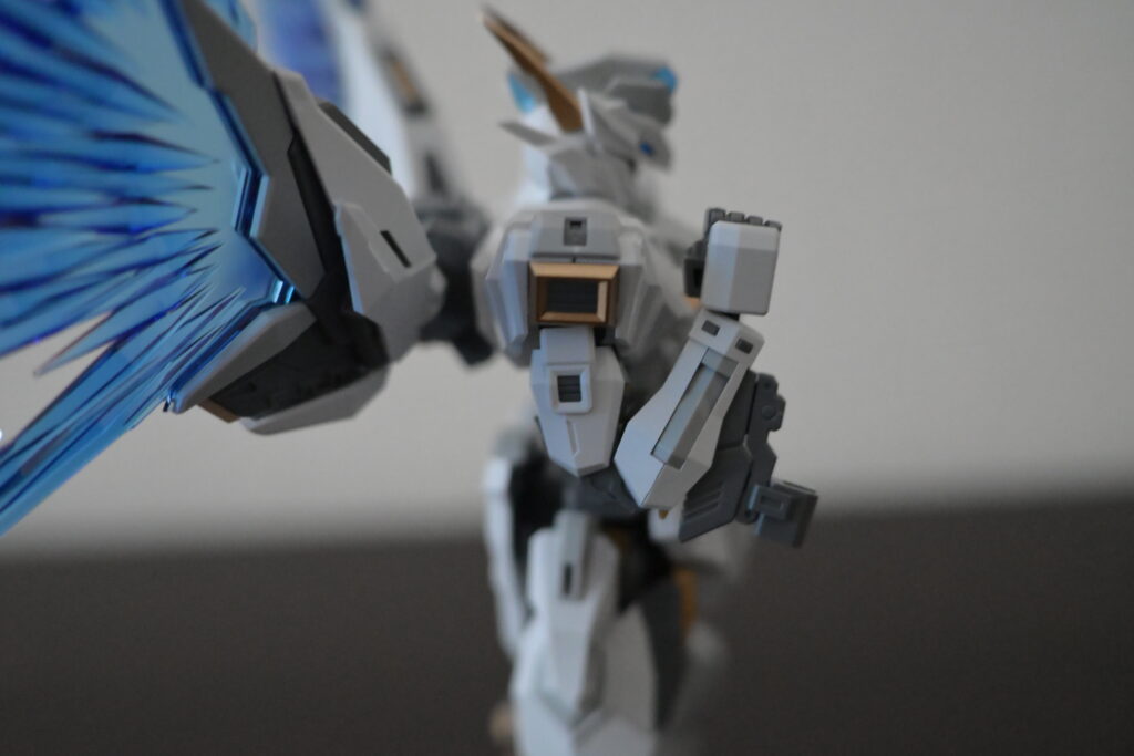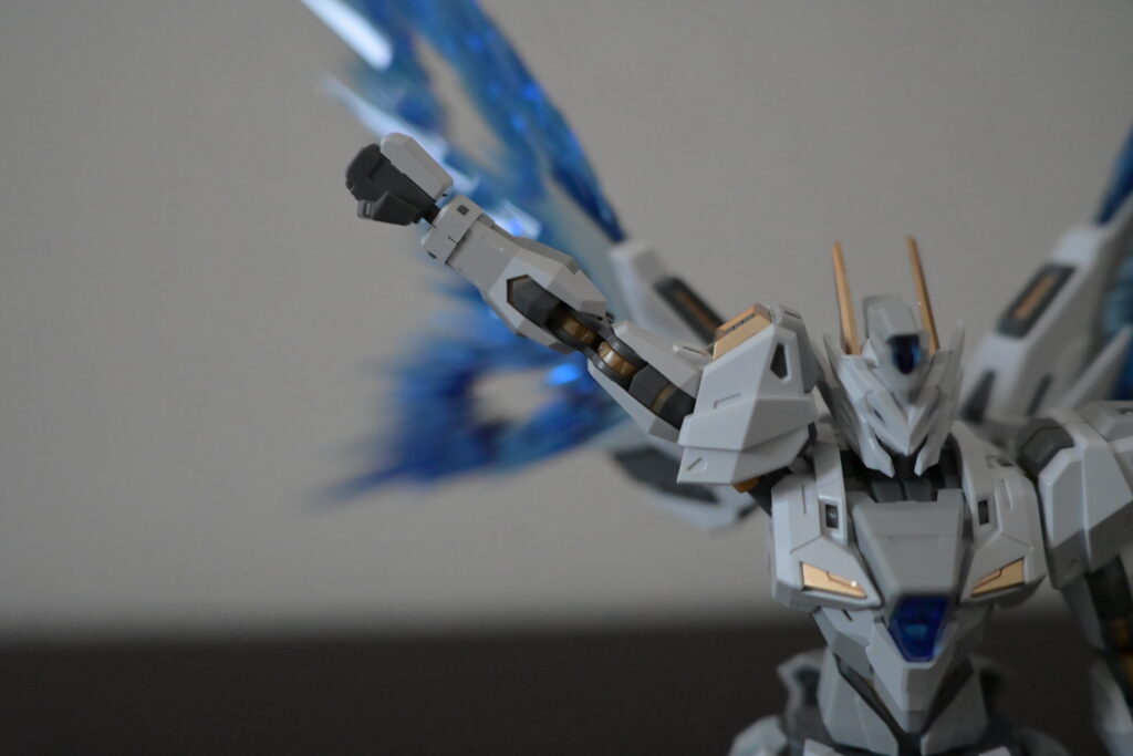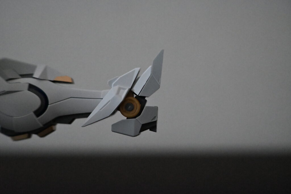 ただ、このギミックにした影響なのか、肩部分の保持力はあまりなく、武器を構えようとすると肩が落ちてきてしまうので、ポージングする際は注意が必要です。