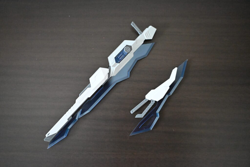 画像左側はブレードとライフルが一体化した武器となっていて、右側はシールドとなっています。